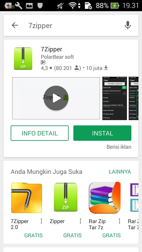 2. Download 7zipper di google play store untuk extrax file yang berformat rar