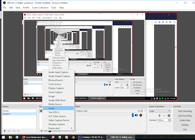 Untuk memulai live streaming kalian buat scane baru terlebih dahulu