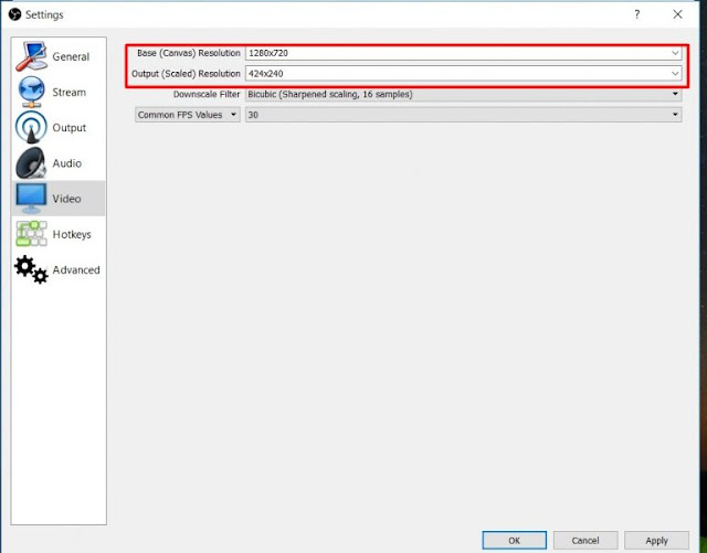 - Masuk ke menu, lalu ubah Base (canvas) resolution dan Output (scaled) resolution. Sesuai gambar di bawah