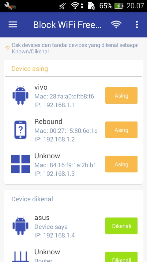 Note : Anda bisa memencet “ASING” jika device tersebut anda kenal