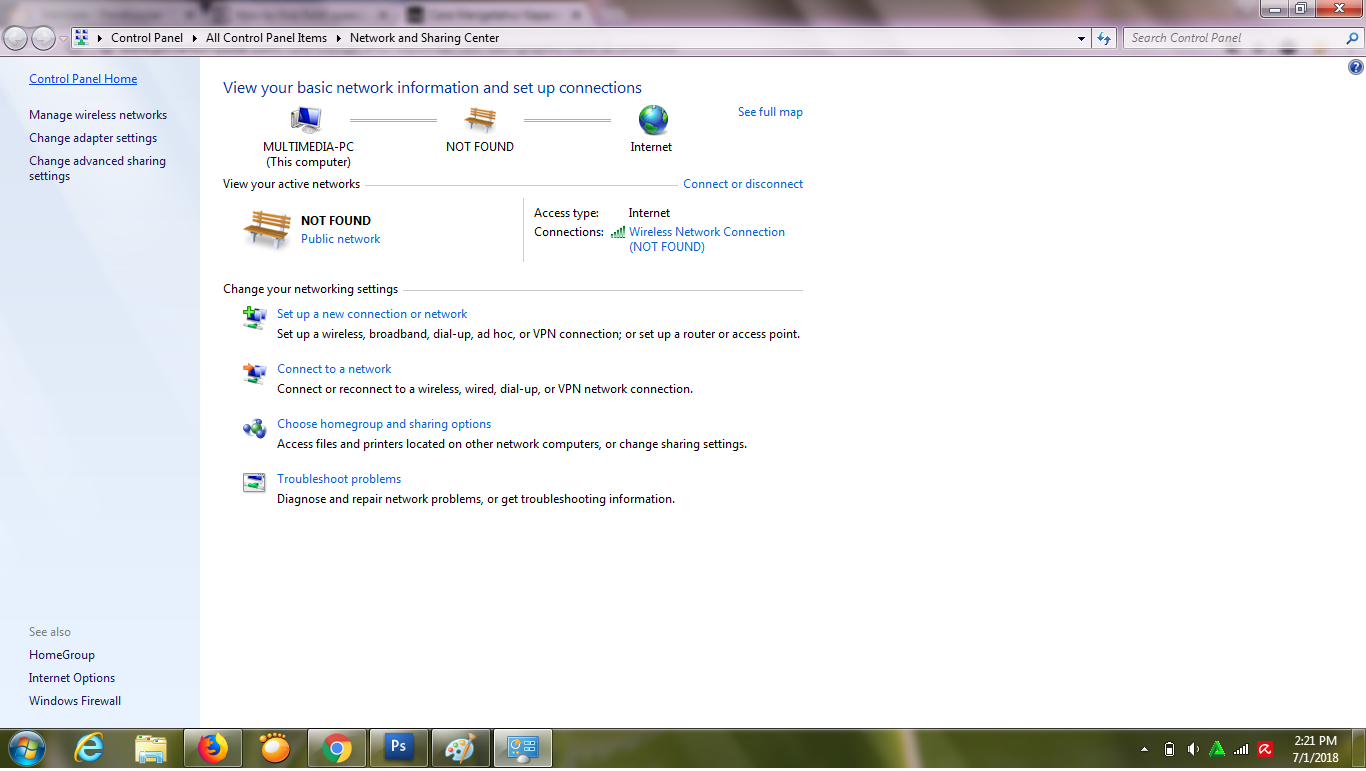 1. Klik kanan ikon Network (di pojok kiri), lalu klik Open Network and Sharing Center.