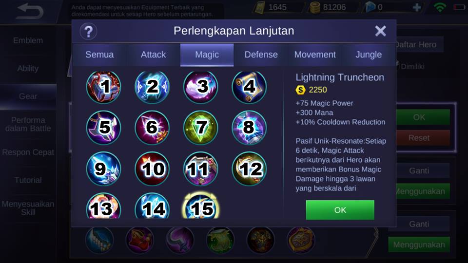 Setiap hero di Mobile Legend memiliki item sendiri. Apalagi terdapat 6 role hero sehingga membuat setiap hero memiliki gearnya sendiri.
